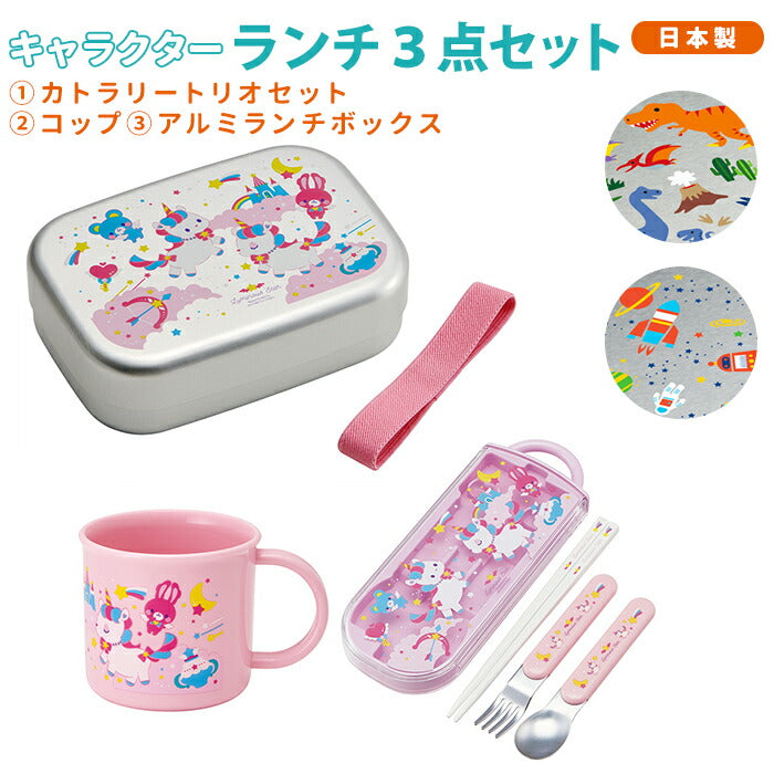 弁当箱 セット 入園 通販 女の子 男の子 ランチボックス アルミ 1段 軽量 軽い おしゃれ かわいい 保温庫対応 アルミランチボックス 遠足 運動会 トリオセット コップ プラコップ お弁当箱 SKATER スケーター ALB5NV TCS1AM KE4A 子供用弁当箱