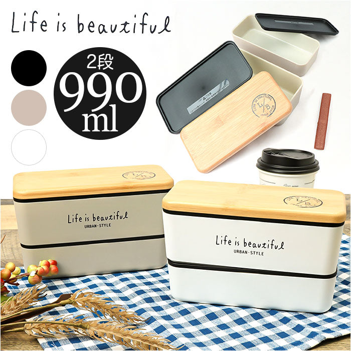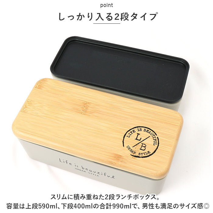 弁当箱 男子 大容量 2段 通販 ランチボックス お弁当箱 おしゃれ 二段 990ml レンジ対応 本体のみ 食洗機対応 高校生 LIFE IS BEAUTIFUL ライフイズビューティフル メンズネストランチ
