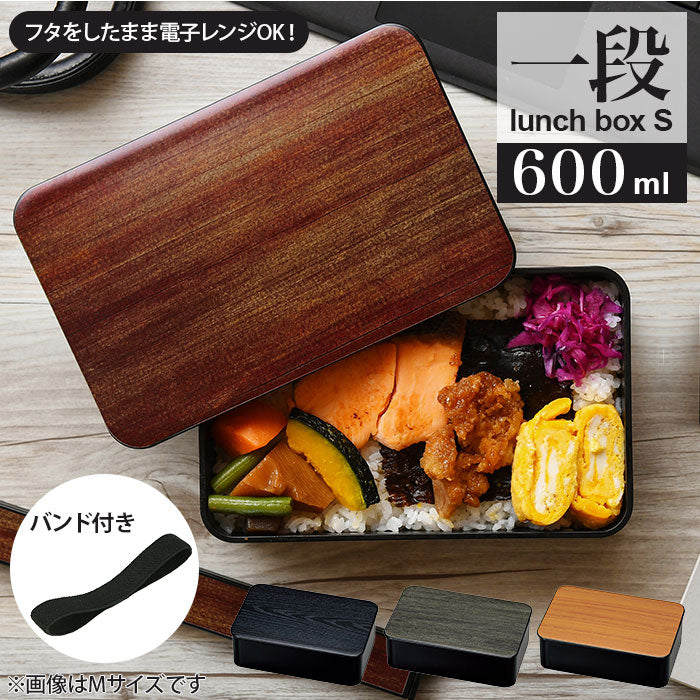 弁当箱 1段 レンジ対応 通販 日本製 600 女子 男子 ランチボックス レディース メンズ おしゃれ 大人 お弁当箱 食洗機対応 シンプル 木目調 一段ランチ S HAKOYA たつみや プラスチック製 大人用弁当箱