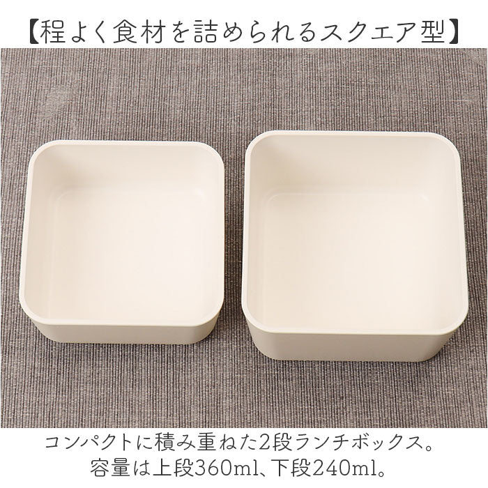 ・コンパクトに積み重ねた2段ランチボックス。容量は上段360ml、下段240ml。