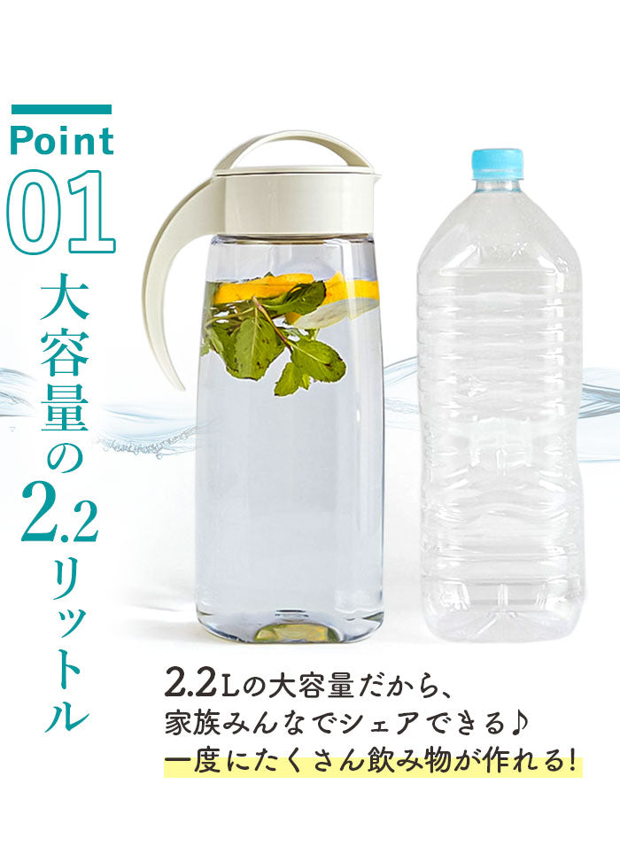 冷水筒 ピッチャー 日本製 約 2リットル 通販 ファインジャグ 2.2L 熱湯 耐熱 横置き 縦置き 大きい 水差し 大容量 2200ml 約 2L ウォータージャグ プラスチック 冷水ポット 麦茶ポット
