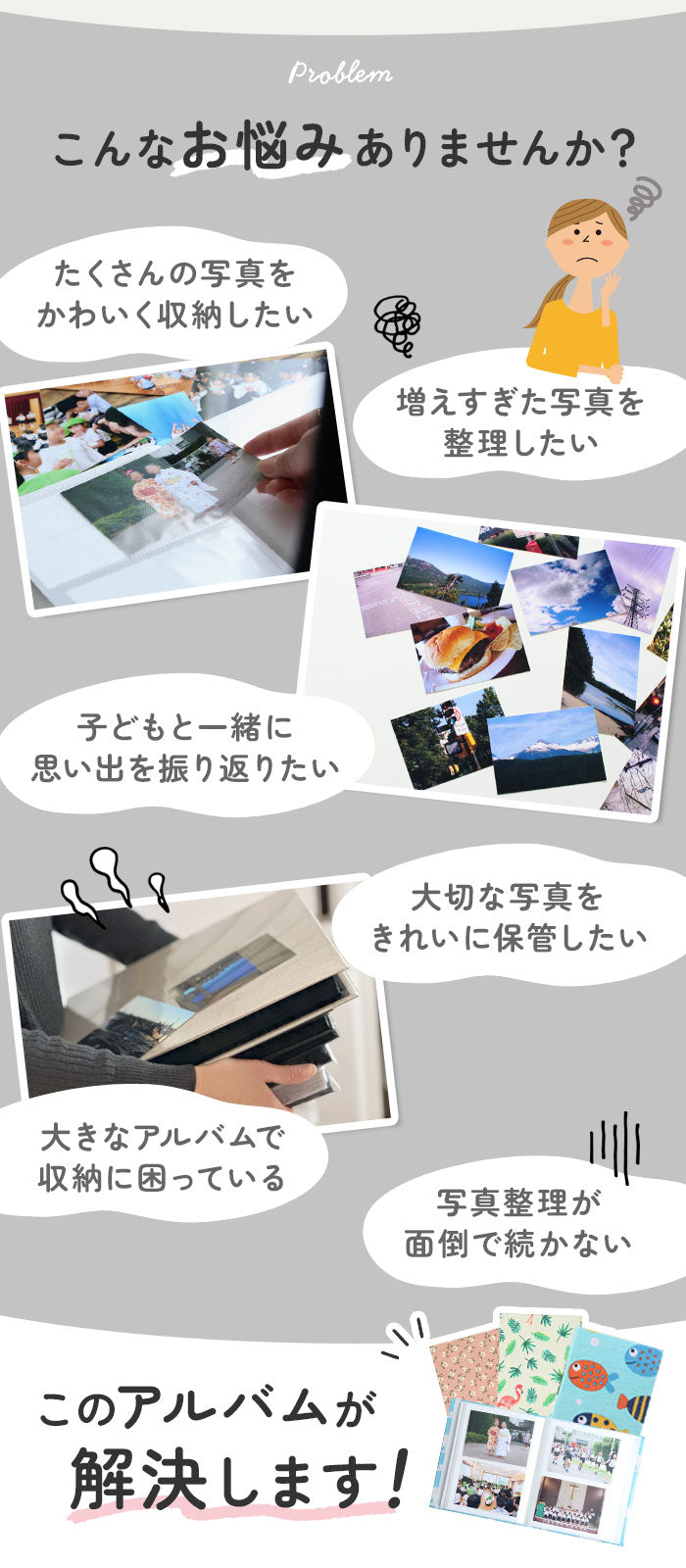 ・ライフイベント毎に増えていくたくさんの写真も、豊富なポケット数とたっぷりの厚みでスッキリ整理できる♪