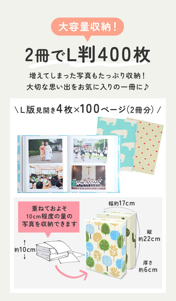 ※L判写真200枚収納可能。(アルバム1冊当たりの収納枚数です。)