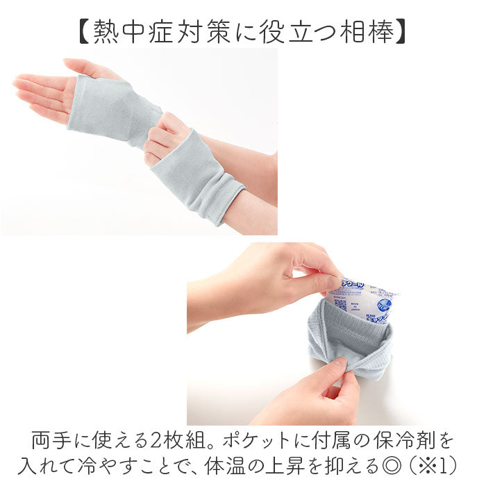 ・両手に使える2枚組。ポケットに付属の保冷剤を入れて冷やすことで、体温の上昇を抑える◎