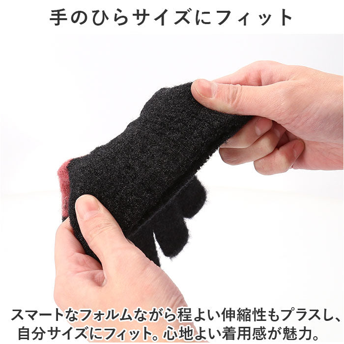 ・程よいボリューム感で、表裏ともにふんわり柔らかな素材。チクチク感がなく、手元を優しくカバーして保温性もアップ。