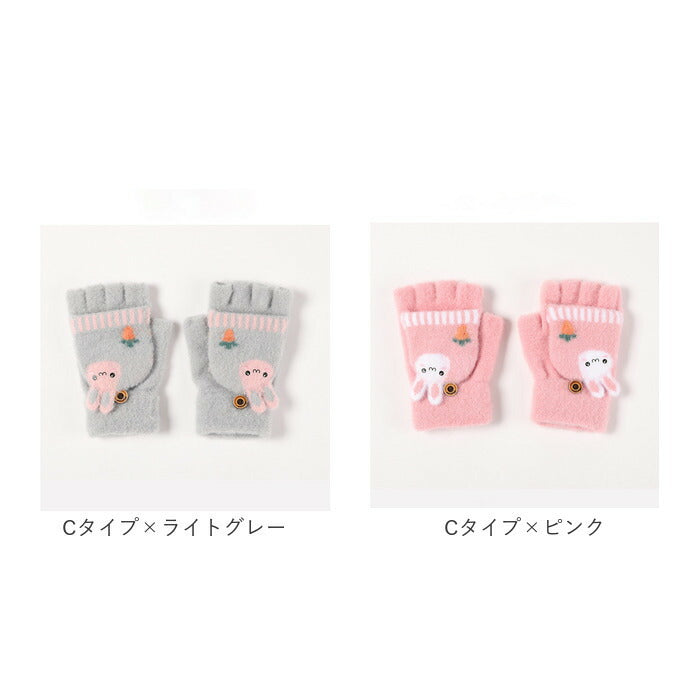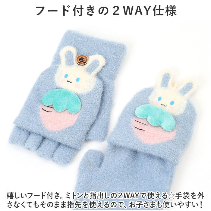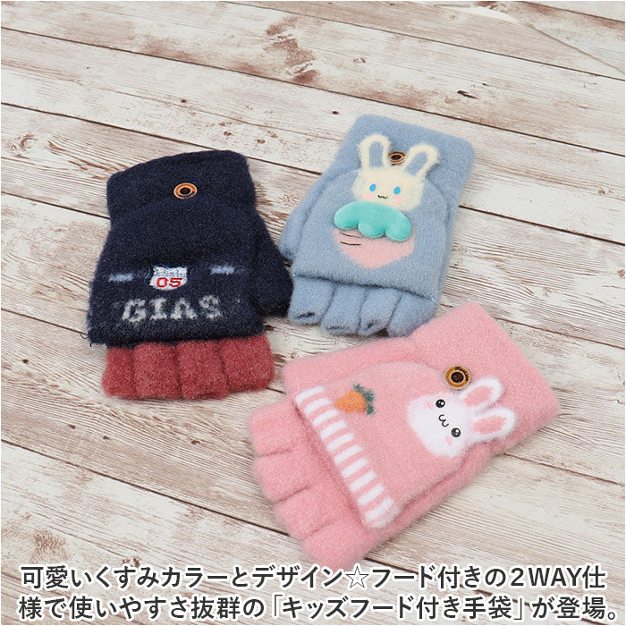 手袋 キッズ 子供 2way 通販 手ぶくろ てぶくろ ミトン 指なし カバー付き グローブ 男の子 女の子 ニット フード付き 防寒 防風 厚手 暖かい 秋 冬 通園 通学 幼稚園 小学生 アウトドア