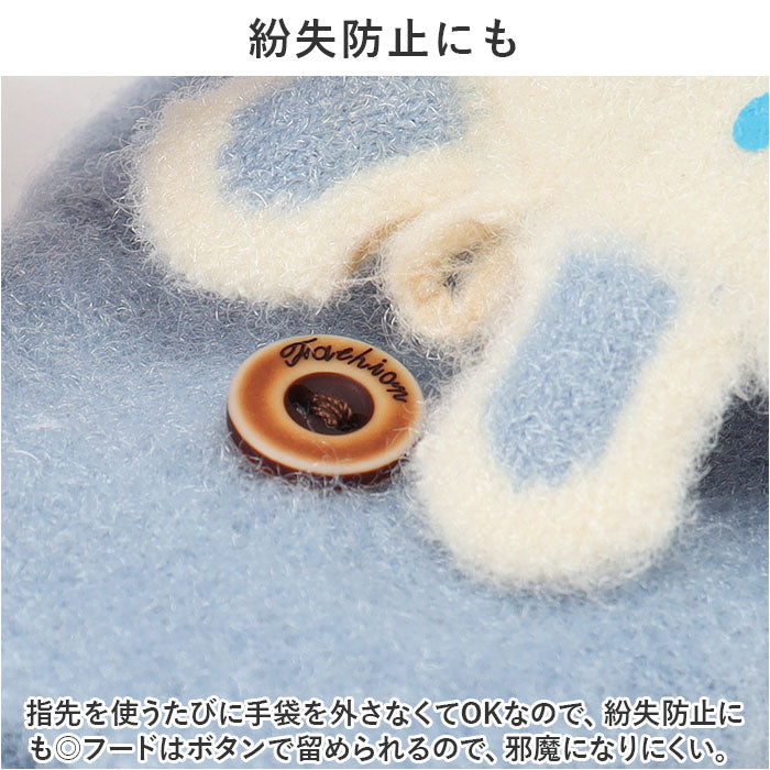・嬉しいフード付き。ミトンと指出しの2WAYで使える☆手袋を外さなくてもそのまま指先を使えるので、お子さまも使いやすい!