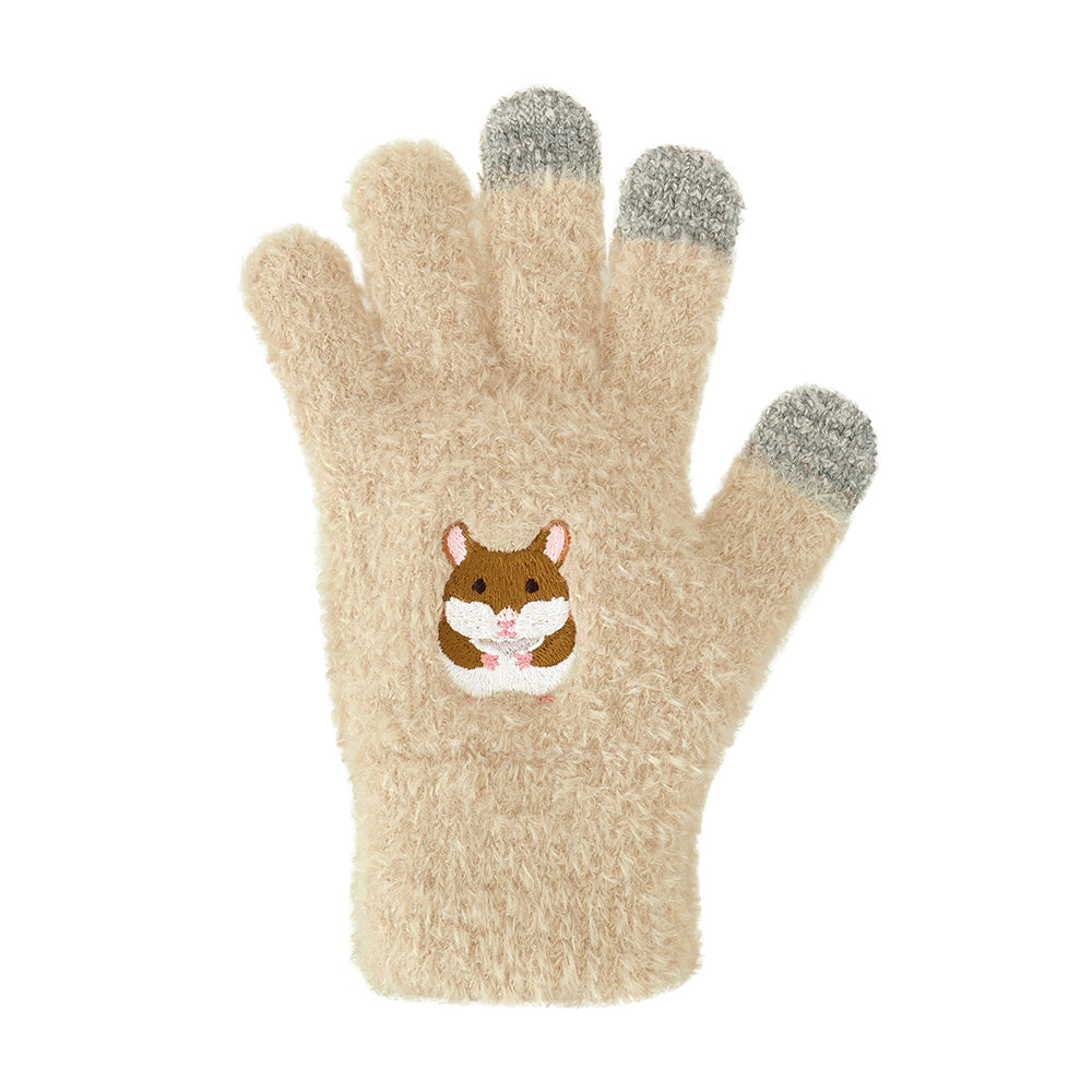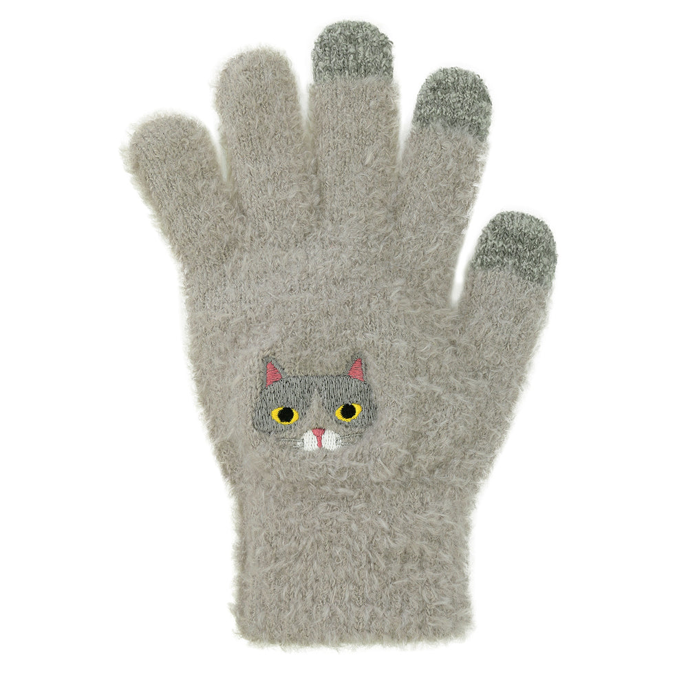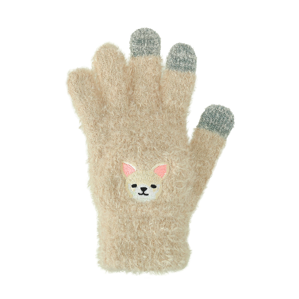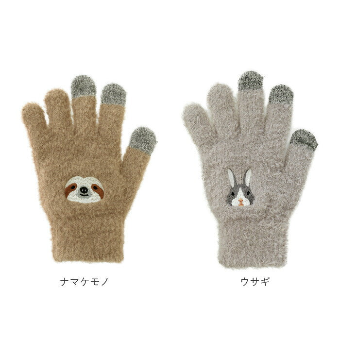 ・動物の刺繍がかわいい!もふもふスマホ手袋。