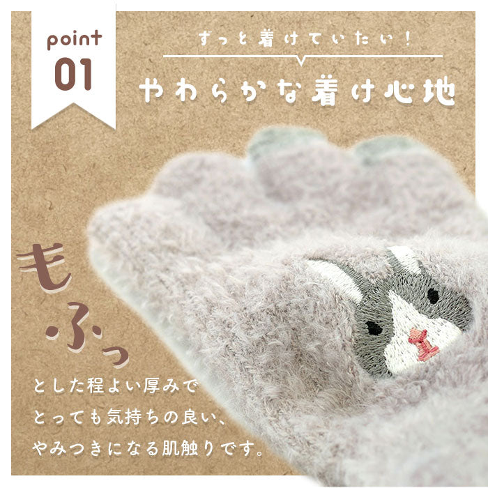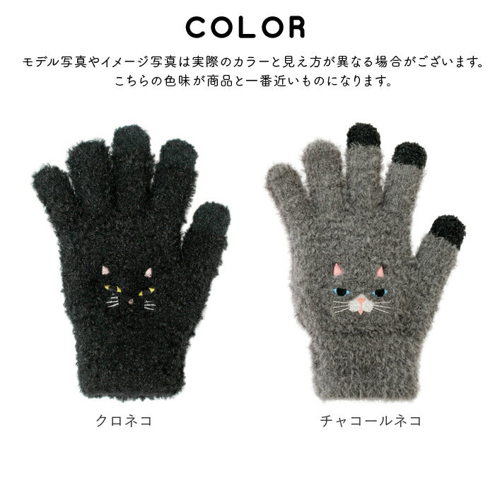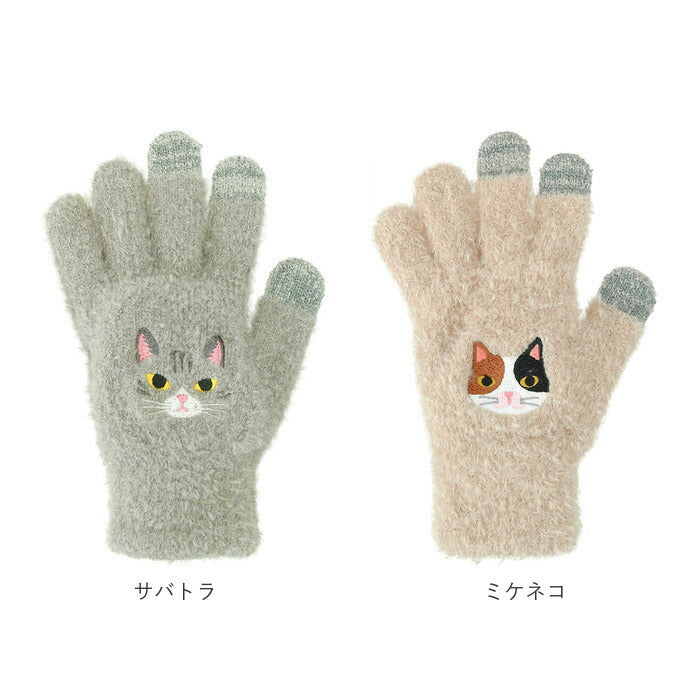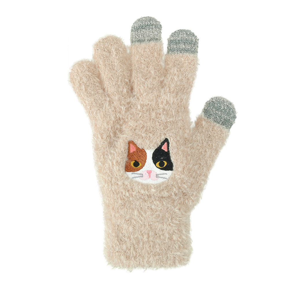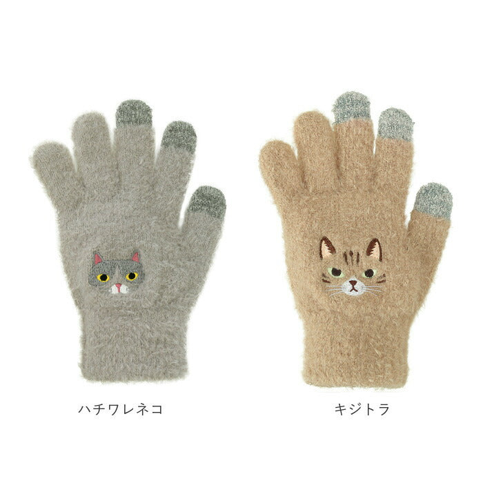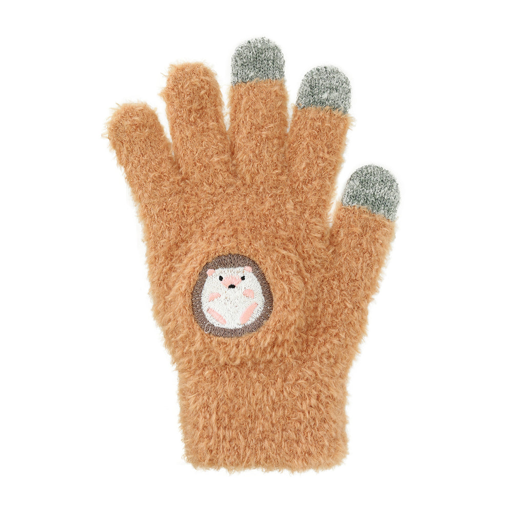 ・動物の刺繍がかわいい!もふもふスマホ手袋。