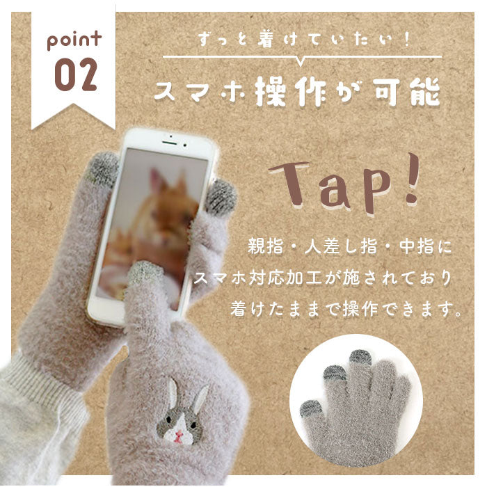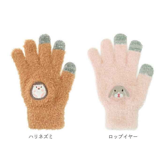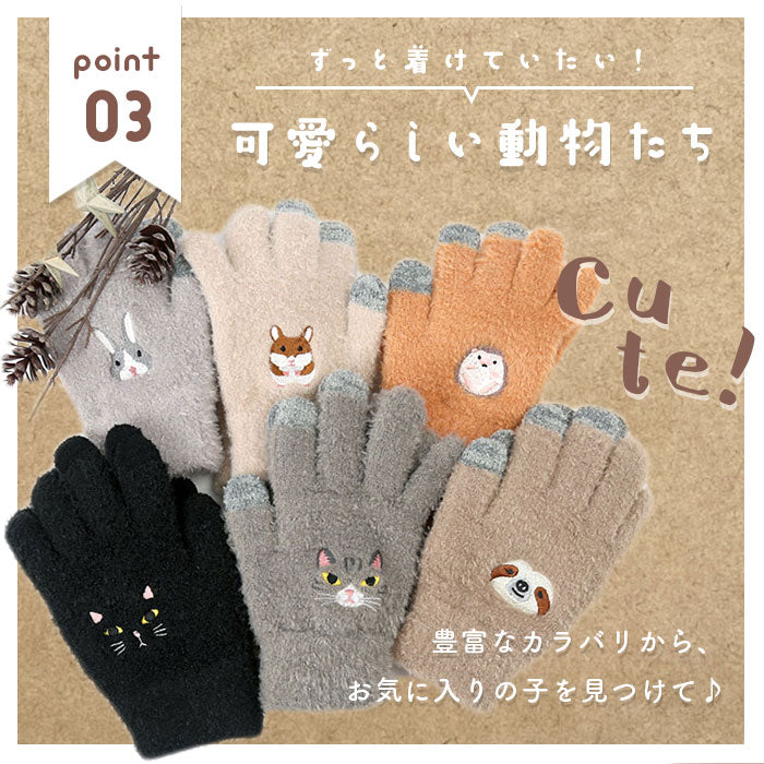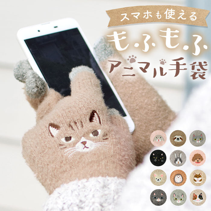 手袋 スマホ対応 レディース 通販 五本指 スマホ手袋 ニット アニマル スマートフォン スマホ タッチパネル グローブ ふわふわ もこもこ 動物 動物柄 リンクコーデ キッズ お揃い 刺繍 スマイル プレゼント ギフト 秋 冬 防寒 かわいい キュート おしゃれ 暖かい