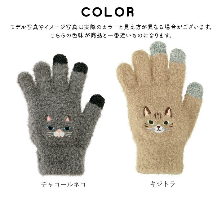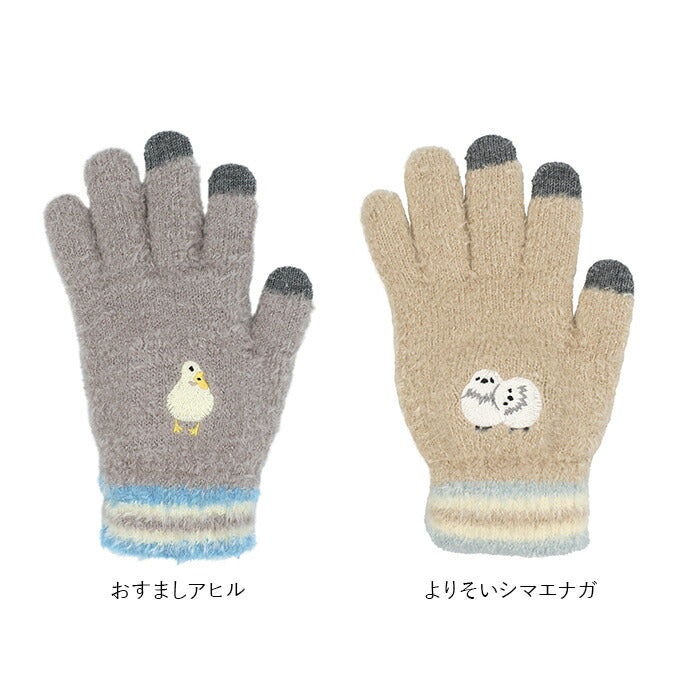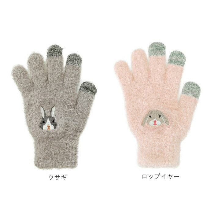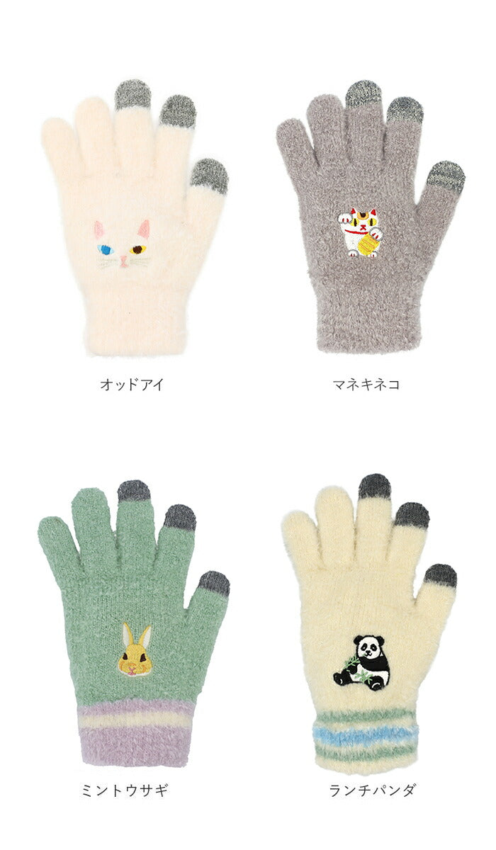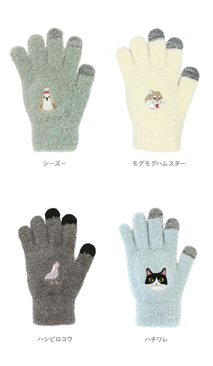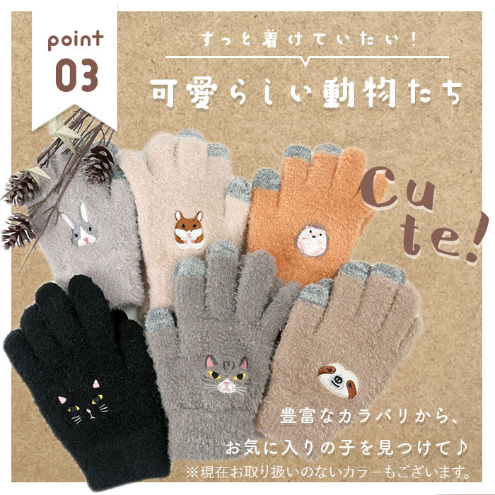 手袋 スマホ対応 レディース 通販 五本指 スマホ手袋 ニット アニマル スマートフォン スマホ タッチパネル グローブ ふわふわ もこもこ 動物 動物柄 リンクコーデ キッズ お揃い 刺繍