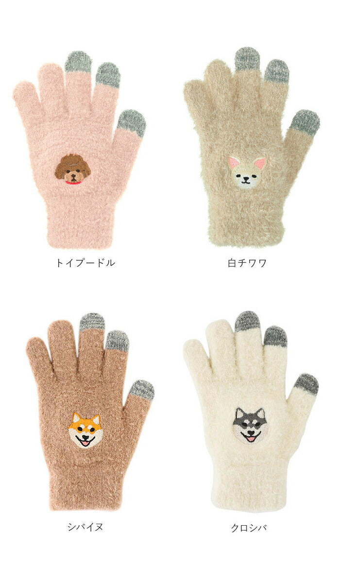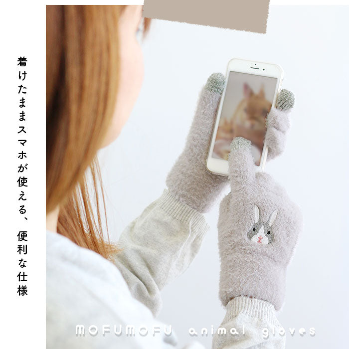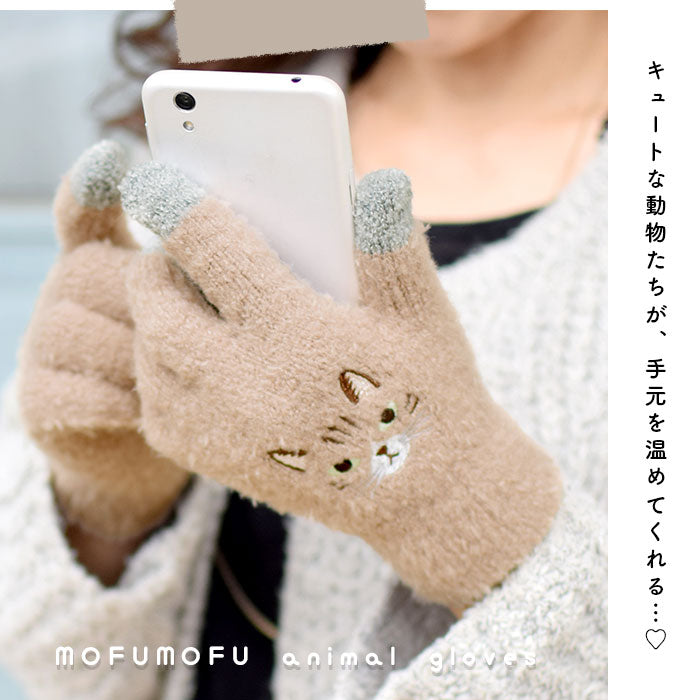 ・動物の刺繍がかわいい!もふもふスマホ手袋。