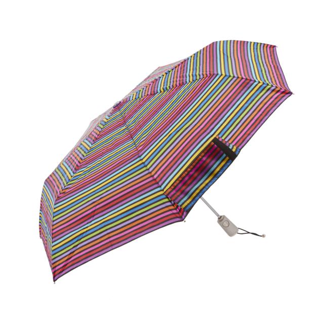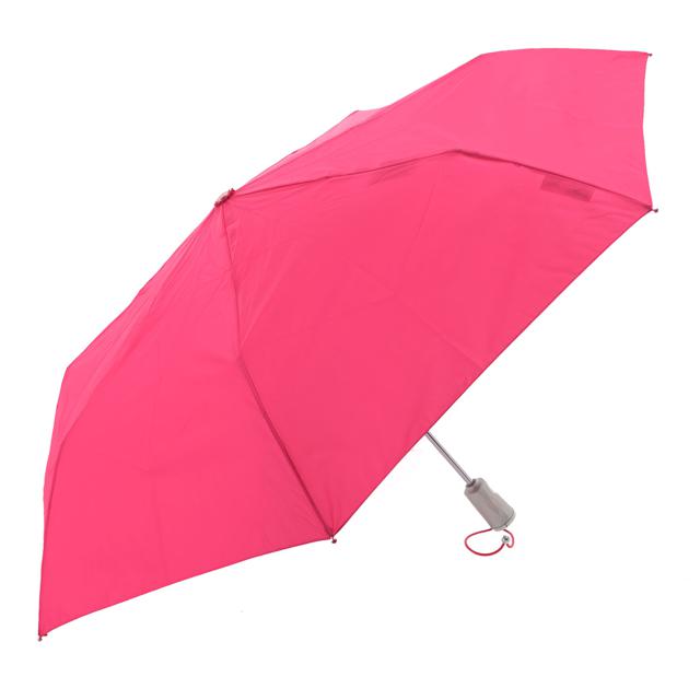 ワンタッチオープンの折りたたみ傘♪ 安定感のあるグリップと7本の傘骨で丈夫です! ボタン一つで自動開閉してくれるので、片手で操作できます。大きめなサイズで安心感があり、ストラップが付いているので持ちやすく、万が一の落下防止にも繋がります。 雨傘はもちろん紫外線防止効果がありますので日傘としても使えます。