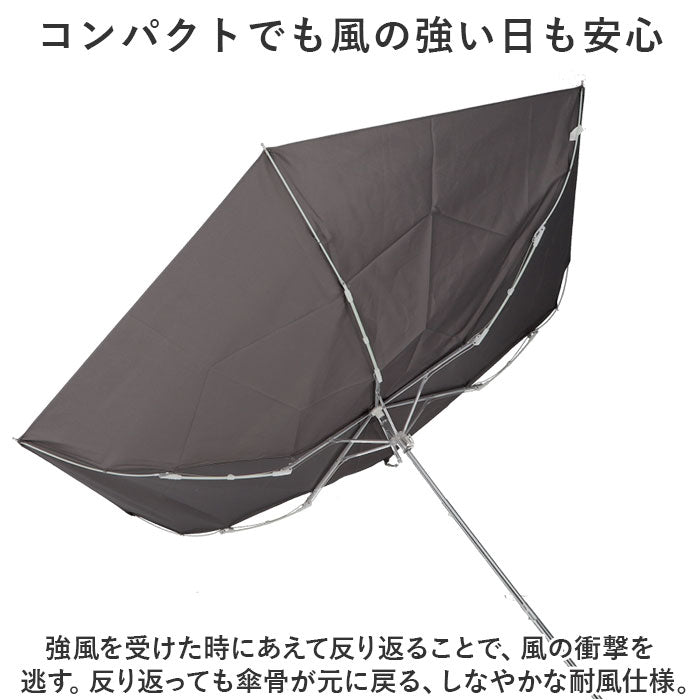 ・強風を受けた時にあえて反り返ることで、風の衝撃を逃す。反り返っても傘骨が元に戻る、しなやかな耐風仕様。