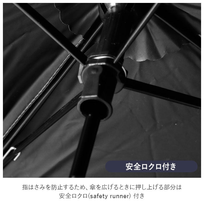 ・指はさみを防止するため、傘を広げるときに押し上げる部分は安全ロクロ(safety runner) 付き。