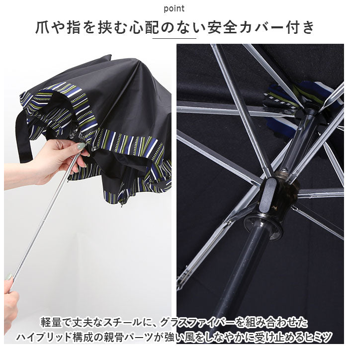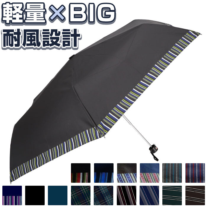 ・身体の大きな男性でも上着の裾や荷物が濡れにくい、折りたたみ傘としては大きめ、親骨約60cm×直径約108cmの安心のサイズ感。