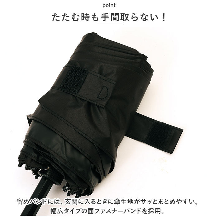 ・薄手のポリエステル生地にポリウレタン加工を施した一級遮光生地を使用。晴れの日も雨の日も頼りになる晴雨兼用ミニパラソル。