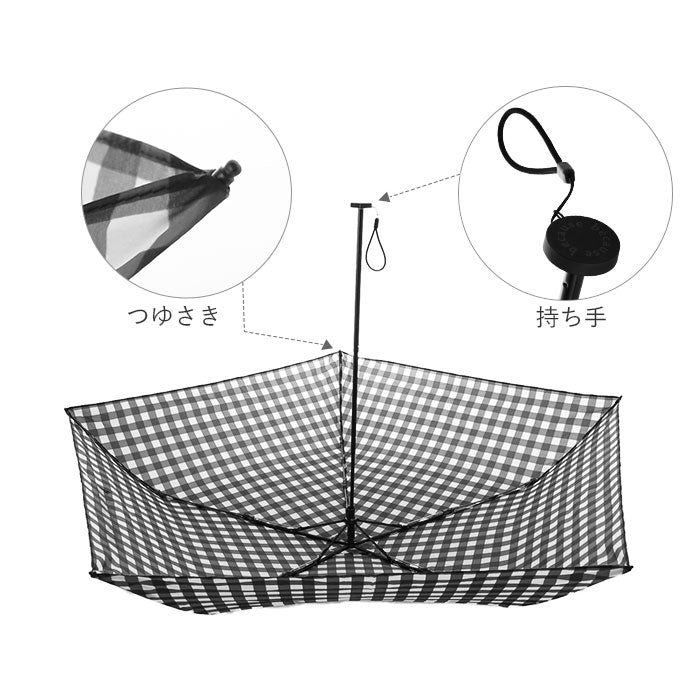 ※傘生地には防水はっ水加工を施し、縫製にははっ水糸を使用していますが、激しい雨や長時間のご使用では雨が染み込むことがございます。また、飾り加工部分(刺繍、ステッチ、パイピング等)は、デザインの特性上完全な防水はっ水加工が難しい場合があり雨が染みやすいのでご注意ください。