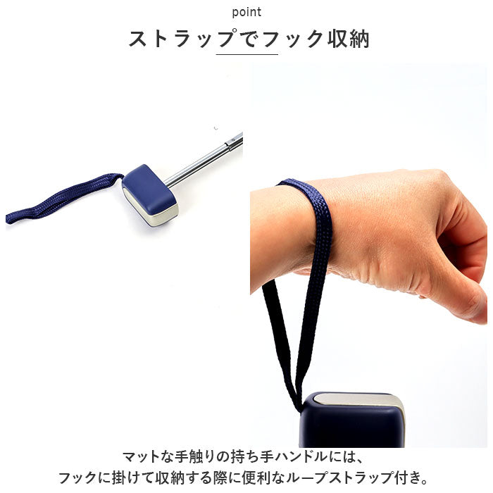 ・マットな手触りの持ち手ハンドルには、フックに掛けて収納する際に便利なループストラップ付き。
