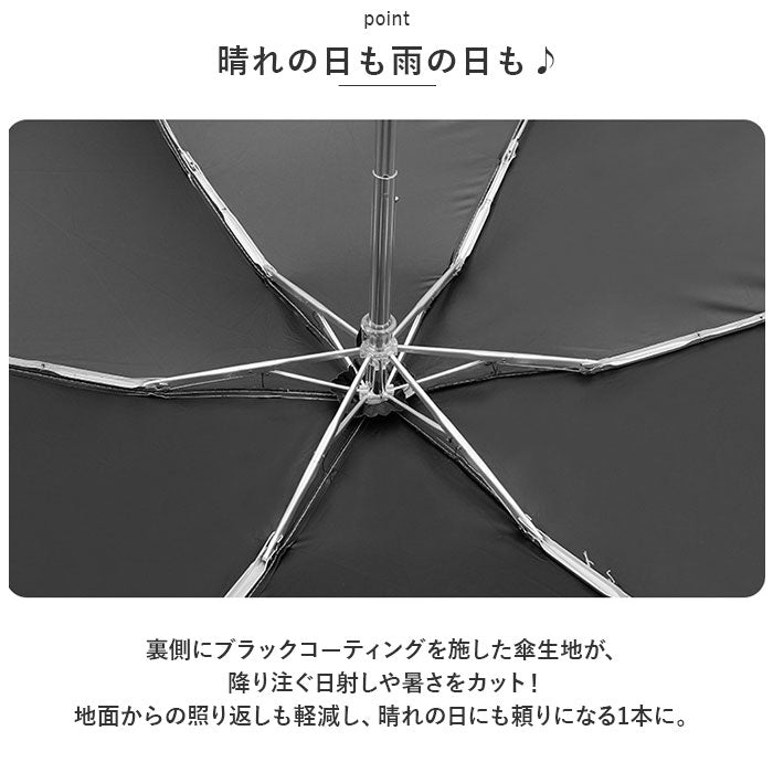 ・裏側にブラックコーティングを施した傘生地が、降り注ぐ日射しや暑さをカット!地面からの照り返しも軽減し、晴れの日にも頼りになる1本に。