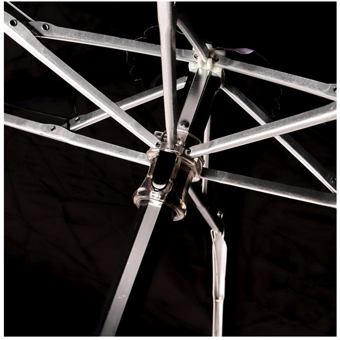 5段に折りたためる平らな骨構造と、軽量なアルミ素材を傘骨に使用することで驚きの軽さとコンパクトさを実現。いつものカバンに忍ばせて、持ち運びが楽ちん。