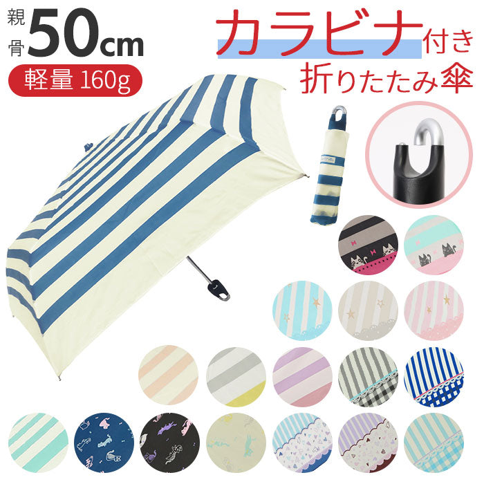 折りたたみ傘 レディース 通販 カラビナ付き 50cm 折り畳み傘 かわいい コンパクト 定番 傘 雨傘 雨具 レイングッズ おしゃれ 通勤 通学 プレゼント 贈り物