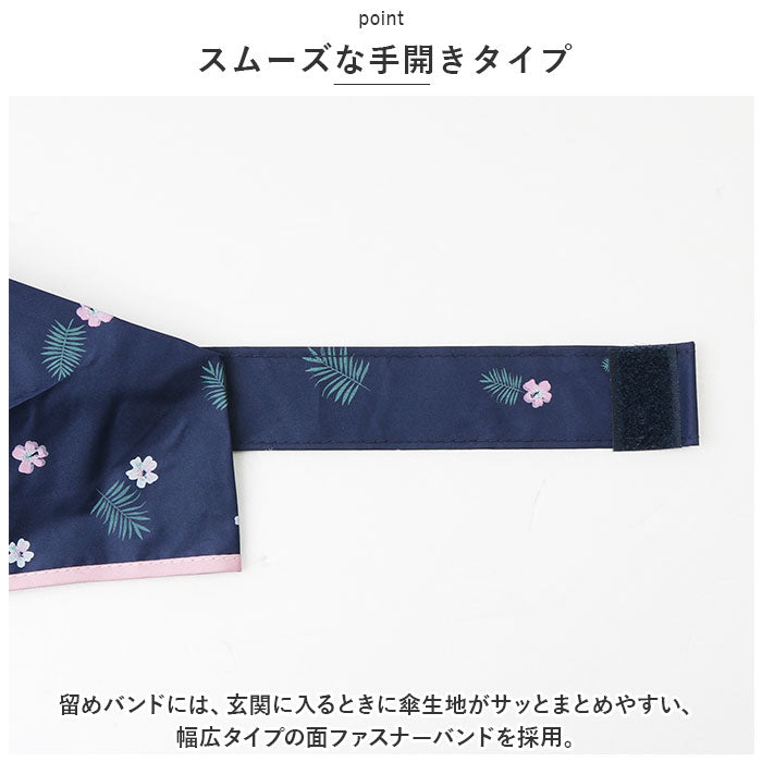 ・留めバンドには、玄関に入るときに傘生地がサッとまとめやすい、幅広タイプの面ファスナーバンドを採用。