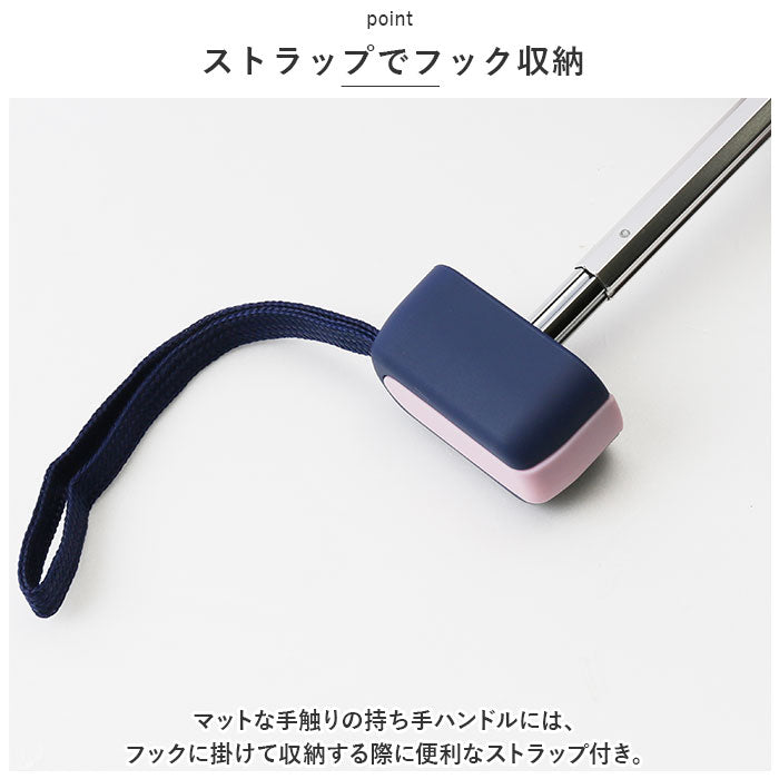 ・マットな手触りの持ち手ハンドルには、フックに掛けて収納する際に便利なストラップ付き。