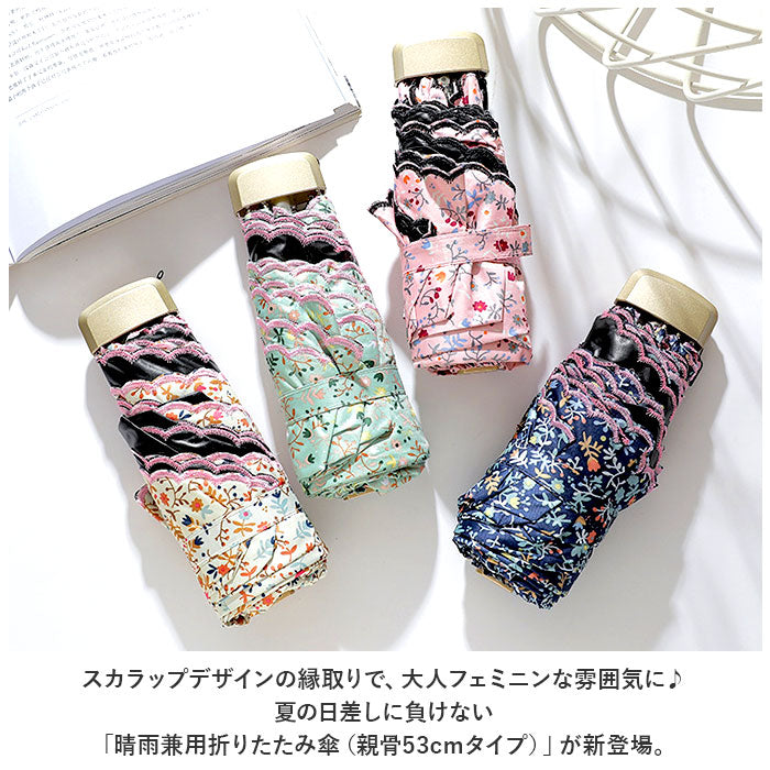 ・スカラップデザインの縁取りで、大人フェミニンな雰囲気に♪夏の日差しに負けない「晴雨兼用折りたたみ傘(親骨53cmタイプ)」が新登場。