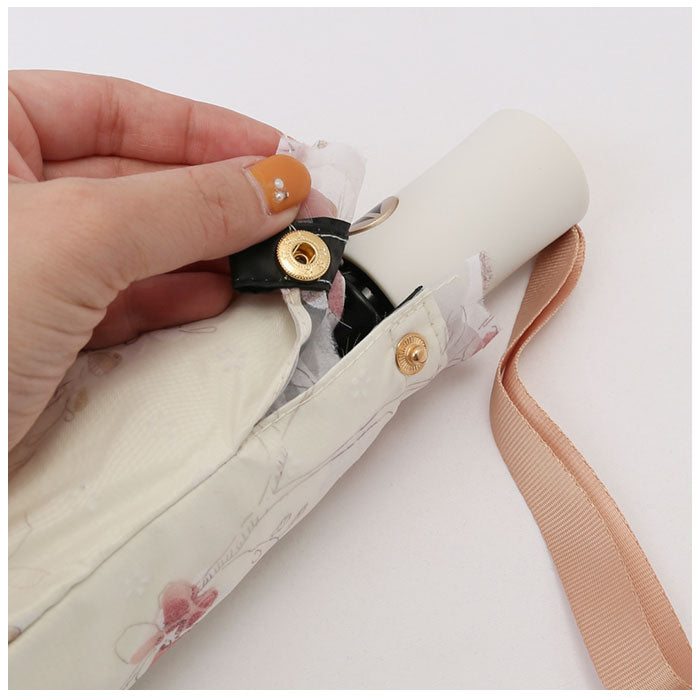 ・オーガンジー生地に浮かび上がる水彩画タッチのボタニカル柄がエレガント。この傘で透明感のある夏のフェミニンコーデが完成!