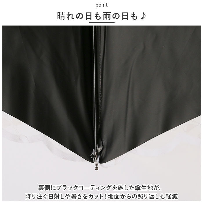 ・裏側にブラックコーティングを施した傘生地が、降り注ぐ日射しや暑さをカット!地面からの照り返しも軽減し、晴れの日にも頼りになる1本に。