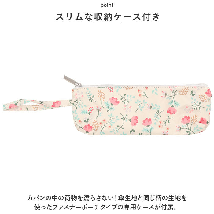 ・カバンの中の荷物を濡らさない!傘生地と同じ柄の生地を使ったファスナーポーチタイプの専用ケースが付属。