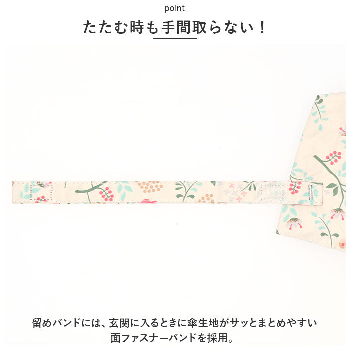 ・留めバンドには、玄関に入るときに傘生地がサッとまとめやすい面ファスナーバンドを採用。