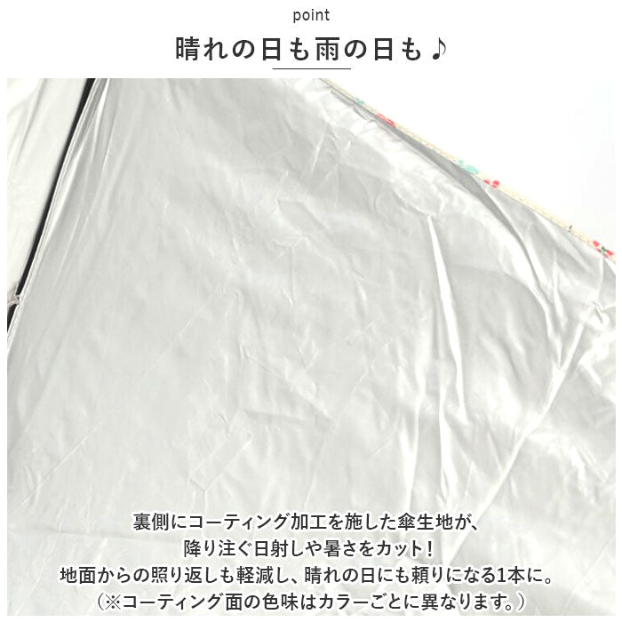 ・裏側にコーティング加工を施した傘生地が、降り注ぐ日射しや暑さをカット!地面からの照り返しも軽減し、晴れの日にも頼りになる1本に。(※コーティング面の色味はカラーごとに異なります。)