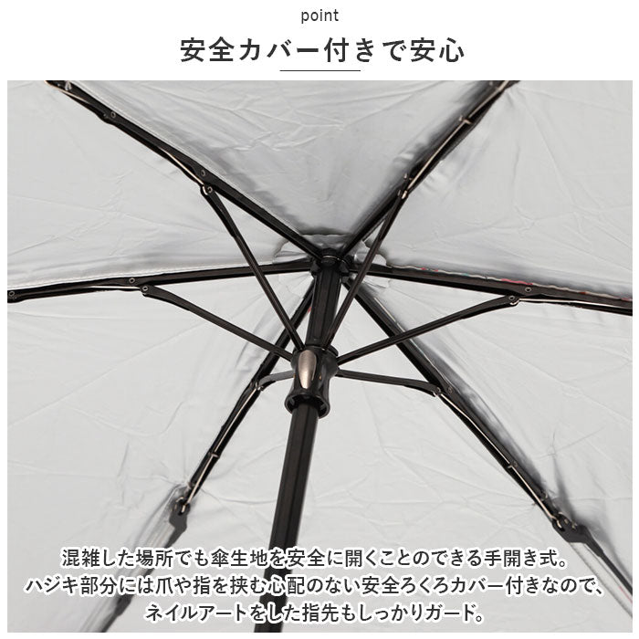 ・混雑した場所でも傘生地をスムーズかつ、安全に開くことのできる手開き式。