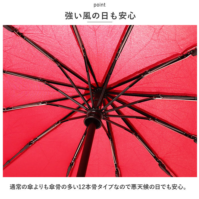 ・通常の傘よりも傘骨の多い12本骨タイプなので悪天候の日でも安心。