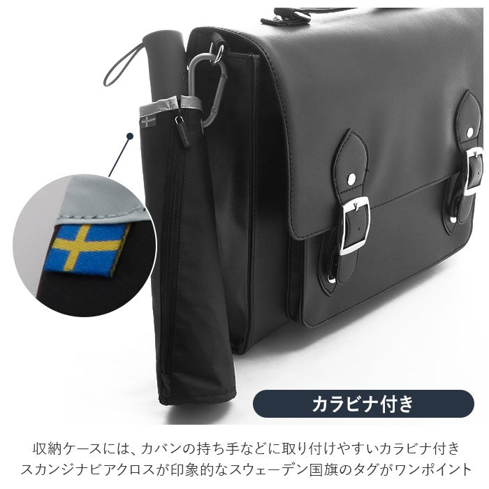・収納ケースには、カバンの持ち手などに取り付けやすいカラビナ付き。スカンジナビアクロスが印象的なスウェーデン国旗のタグがワンポイント。