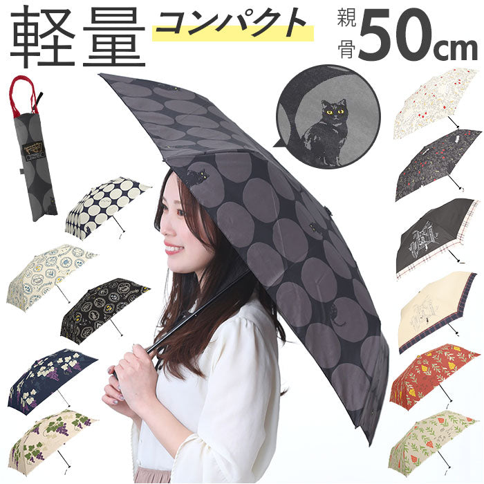 ・カラフルな傘生地に動植物の絵柄が描かれた、軽量でコンパクトタイプの折りたたみ傘!(親骨50cmタイプ)