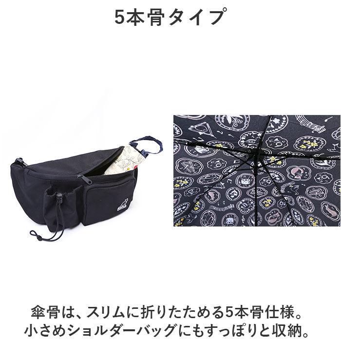 ・傘骨は、スリムに折りたためる5本骨仕様。小さめショルダーバッグにもすっぽりと収納。