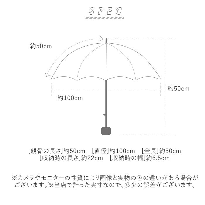 ・中骨シャフトは軽量なアルミ素材で、開閉時の操作がスムーズ!傘生地を広げれば、親骨約50cmの程よいサイズ♪
