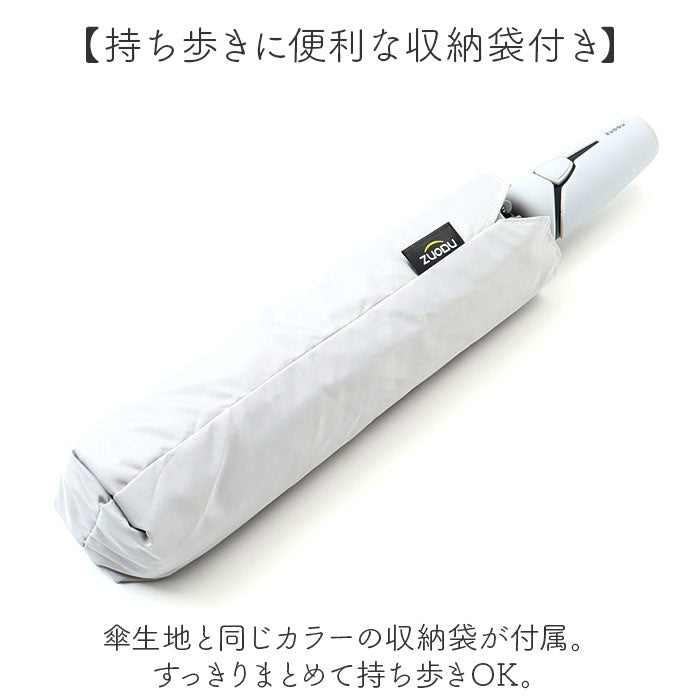 ・傘生地と同じカラーの収納袋が付属。すっきりまとめて持ち歩きOK。