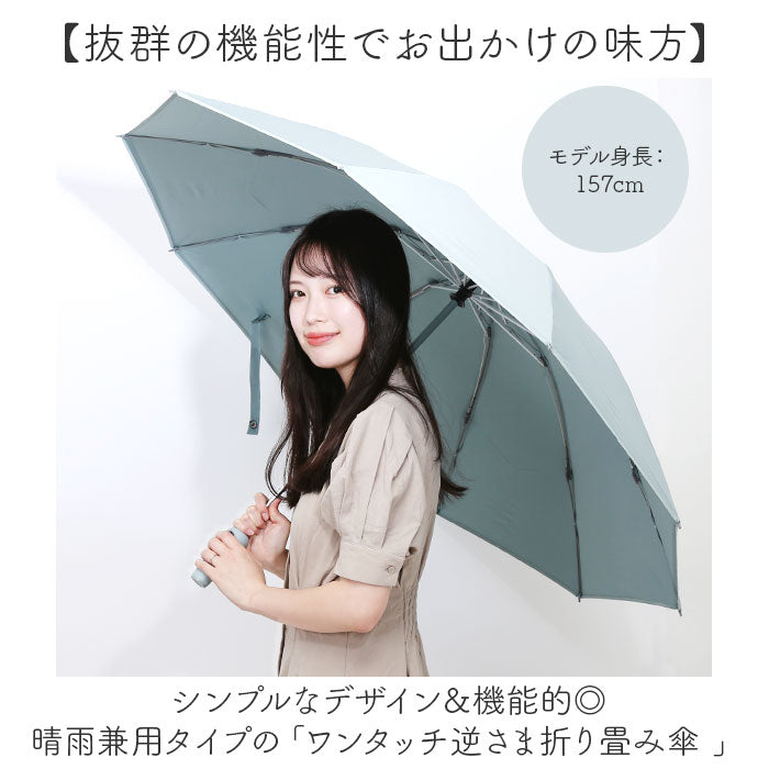 ・シンプルなデザイン&機能的◎晴雨兼用タイプの「ワンタッチ逆さま折り畳み傘 」。