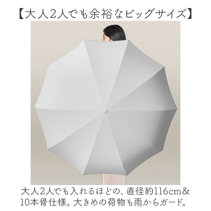 ・大人2人でも入れるほどの、直径約116cm&10本骨仕様。大きめの荷物も雨からガード。