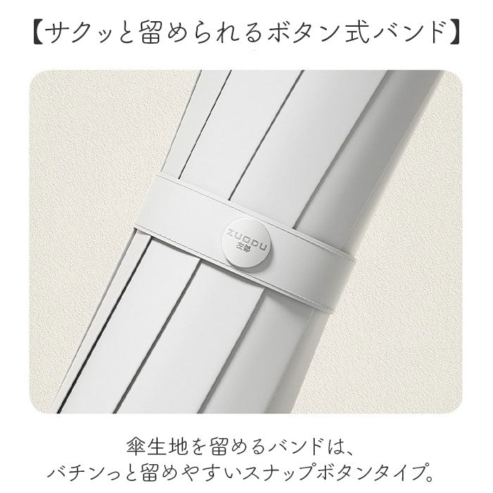 ・傘生地を留めるバンドは、バチンっと留めやすいスナップボタンタイプ。