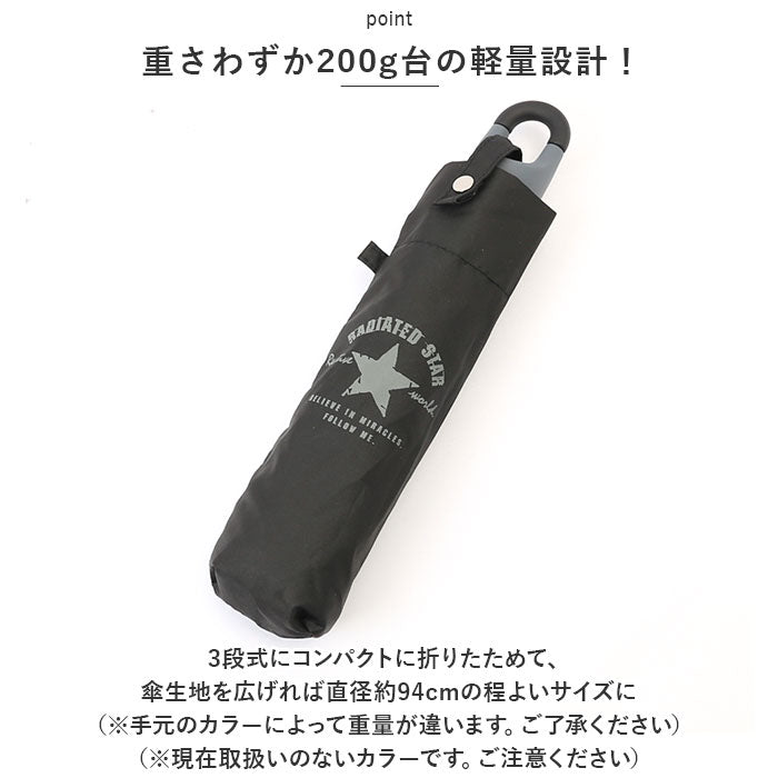・重さわずか約228gの軽量設計!3段式にコンパクトに折りたためて、傘生地を広げれば直径約94cmの程よいサイズに。