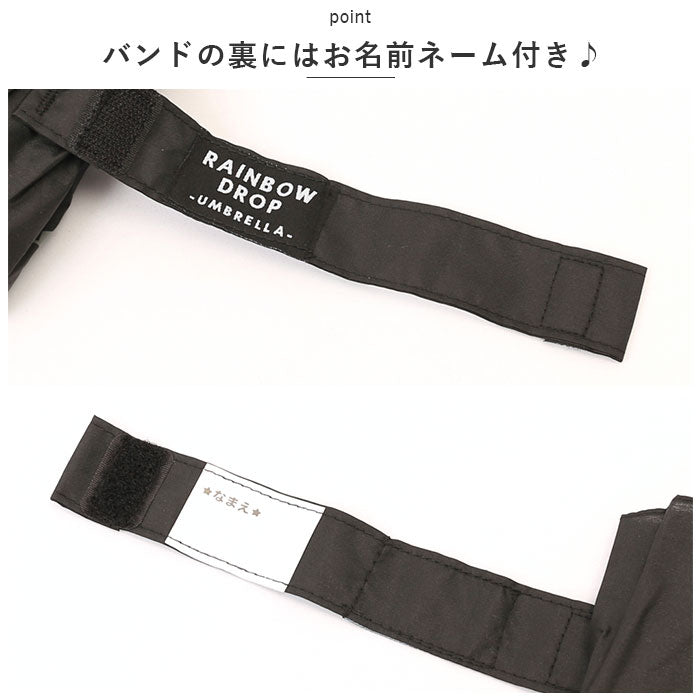 ・バンドの裏にはお名前ネーム付き♪お友だちの傘との取り違えを防いで、急な雨の日も慌てない♪お友だちとお揃いの傘でも大丈夫!
