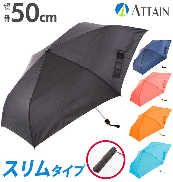 折りたたみ傘 50cm ATTAIN アテイン 通販 折り畳み傘 50センチ メンズ レディース 軽量 軽い スリム コンパクト 無地 シンプル 三つ折り 3つ折り 3段折り 三段折り 黒 ブラック 紺 ネイビー 傘 かさ カサ 折り畳み 折りたたみ 折り傘 おりたたみ傘 置き傘 おき傘 男性 紳士