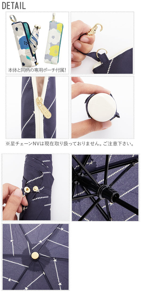 折りたたみ傘 w.p.c ワールドパーティ 通販 レディース 50cm 6本骨 晴雨兼用 アンブレラ ミニ ジッパー ケース 収納 ポーチ 付き 折り畳み 傘 軽量 軽い コンパクト かわいい おしゃれ
