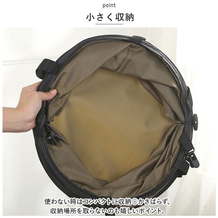 ・アウトドアなど屋外でゴミ箱として使用するのはもちろん、洗濯物入れやおもちゃ収納など屋内でも使用できる◎