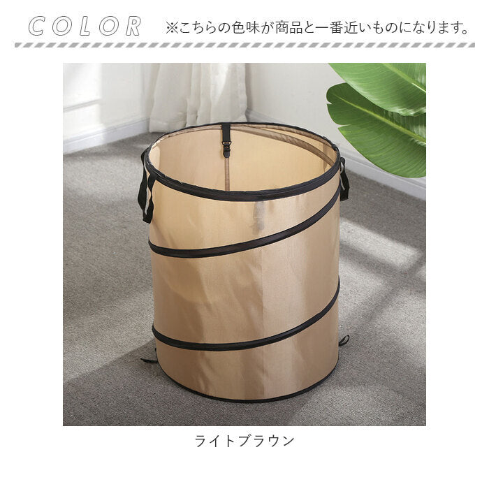 ・ロック紐を外すだけでパッと広がるポップアップ式のゴミ箱。軽量で、コンパクトに折りたためるので持ち運びにも便利!